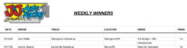 August 27 J&J Auto Racing Teams Dominate with Wins Across Four States