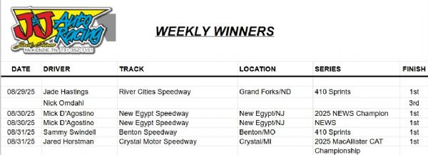 August 27 J&J Auto Racing Teams Dominate with Wins Across Four States